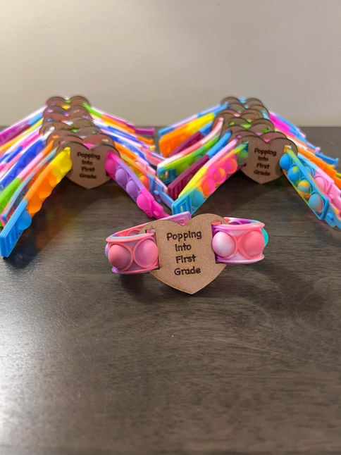 Here's a great gift idea for the end of the school year! Perfect for Pre-K through 5th grade students. Each bracelet includes an adjustable size bracelet (fits child to adult) and cute heart.